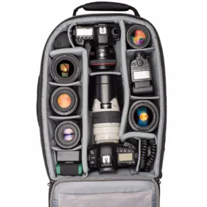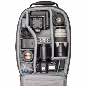 - Piller, hafıza kartları, filtreler ve aksesuarlar için iç fermuarlı cepler